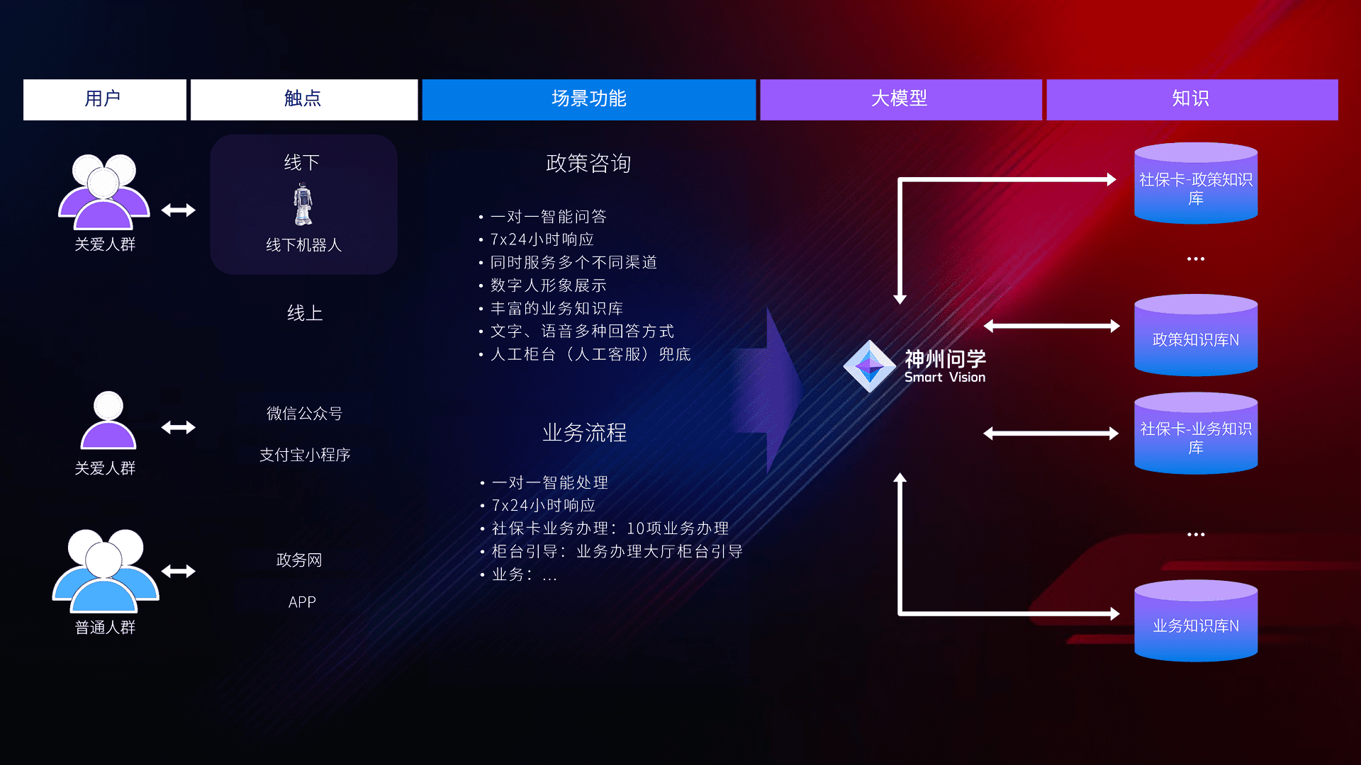 • 线上线下全覆盖:线上提供微信公众号、、、支付宝小程序、、政务网、、、、app多种渠道,,与线下机器人形成完整服务体系。。